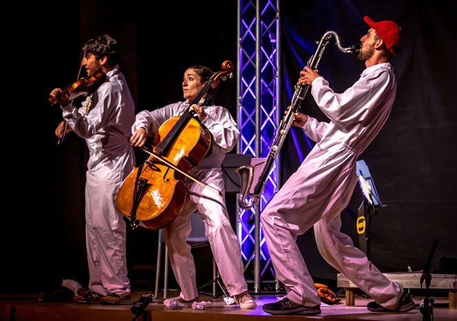 El repertorio nos invita a realizar un viaje inverso por la línea cronológica del tiempo: desde la música Pop más actual pasando por el Jazz, la música clásica contemporánea, la música del clasicismo y el barroco, el canto gregoriano e incluso explorando la música ancestral con músicas tribales. Los tres intérpretes exploran distintas sonoridades con la combinación desde el violín, el clarinete, el violonchelo y otras sorpresas que irán apareciendo. Tocando obras variadas, se adentran en las técnicas de interpretación tanto modernas como clásicas, formando sonoridades muy variadas. Sus audiciones en vivo son poderosas, precisas y estimulantes. Con un sonido característico, y con un toque personal, aportan frescura gracias al amplio bagaje de sus intérpretes.